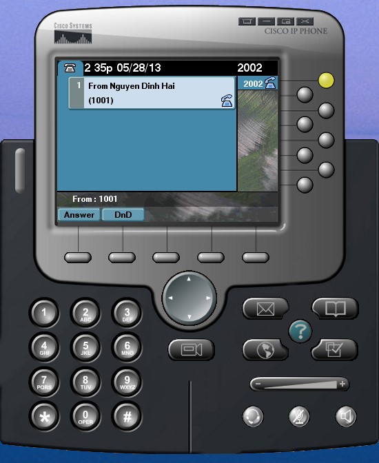 Bước 3: IP Phone được gọi sẽ báo hiệu có một cuộc gọi từ 1001 – sau đó nhấn button Answer để trả lời cuộc gọi