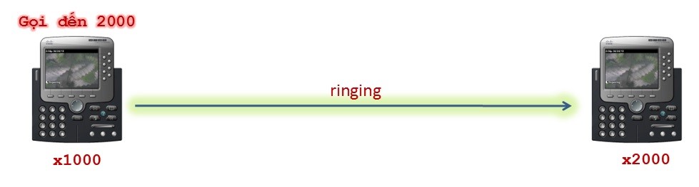 Bước 2: IP Phone bắt đầu thực hiện cuộc gọi đến IP Phone đầu bên kia với số là 2002