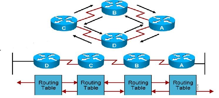 Hoạt động theo nguyên tắc hàng xóm, là giao thức quảng cáo số lượng Hops và chỉ đường cho các Packet có thể đến được mạng đích. Các thuật toán Distance vector được biết đến như là Bellman-Ford, cho phép Router cập nhật thông tin trên bảng định tuyến của các Router “hàng xóm” theo định kỳ, gọi là Routing-update (30 giây với RIP , 60 giây đối với RIP-novell , 90 giây đối với IGRP).