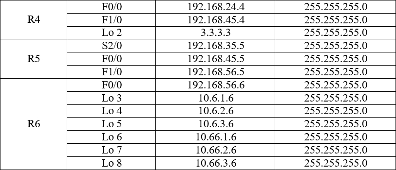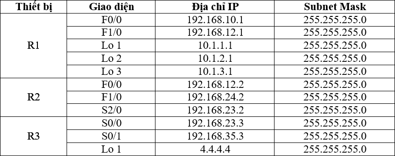 Bước 1: Đặt IP theo sơ đồ 192.168.Rxy.R/24 và các cổng loopback