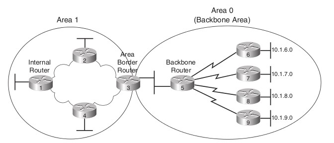 - Backbone area Đối với một mạng OSPF, dù có hay không có các areas thì nhất thiết phải có một backbone area. Backbone area là area 0 (0.0.0.0). Backbone area đóng vai trò như một nơi trung chuyển các thông tin cho toàn bộ AS. Các gói tin inter-area được đưa qua backbone area, sau đó được đưa đến các area đích và đích đến thực sự.