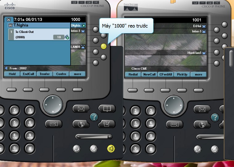 Bước 4: Cuộc gọi được chuyển sang số máy “1001” theo thứ tự ưu tiên (freferent)