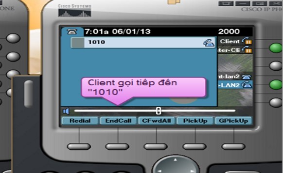 Bước 6: Máy Client nhận cuộc gọi và trả lời tại “button số 6”