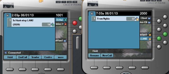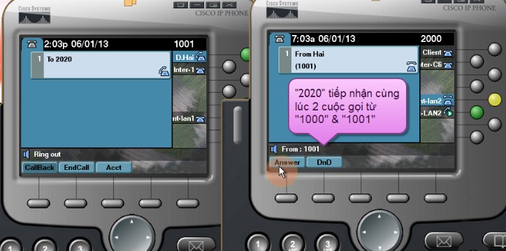 Bước 7: Máy “1001” cũng gọi đến số “2020” của máy Client cùng lúc với máy “1000”
