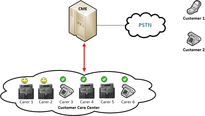 Ở bộ phận chăm sóc khách hàng của một công ty/ doanh nghiệp. Có thể sẽ có rất nhiều điện thoại với cùng một số điện thoại dùng chung. Khi một khách hàng A gọi vào Nhân viên tư vấn A1 sẽ là người trả lời đầu tiên. Khi khách hàng B khác tiếp tục gọi vào thì nhân viên tư vấn A2 sẽ trả lời…
