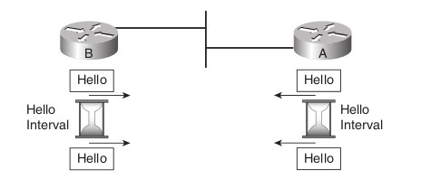 Ngay sau khi Router đã chọn được RID của nó và một vài interfaces đã được kích hoạt, Router sẽ sẵn sàng để xác định ra các Router láng giềng. Các OSPF Routers có thể trở thành láng giềng của nhau nếu cùng nằm trong một subnet (LAN). Để khám phá ra các OSPF láng giềng, OSPF Router sẽ phát gói tin multicast Hello ra mỗi interfaces với mục đích là nhận lại được một gói tin Hello đáp trả lại từ các OSPF Router đang kết nối trực tiếp với nó. Một vài đặc điểm và chức năng cơ bản của gói tin Hello: