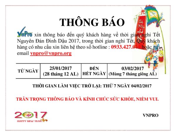 LỊCH NGHỈ TẾT ÂM LỊCH 2017 TRUNG TÂM TIN HỌC VNPRO -