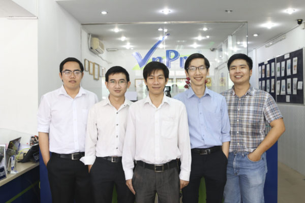 Đội ngũ Phòng Kỹ Thuật của VnPro (từ trái qua: anh Trọng Nghĩa, anh Ngọc Quý, anh Hoàng Tâm, anh Đông Khê, anh Thanh An)