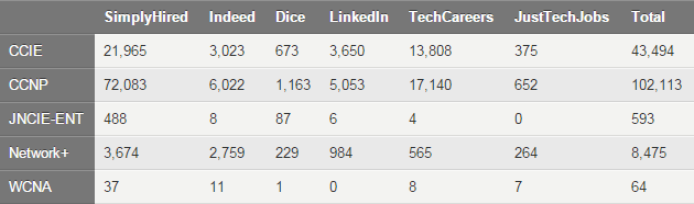 Cục Thống kê Lao động của Mỹ thống kê năm 2012: trung bình lương hàng năm cho quản trị mạng khoảng $ 74,270. Dự đoán số lượng việc làm 127.700 lao động/năm. Giống như lĩnh vực y tế và xây dựng sẽ tiếp tục tăng trưởng tốt trong tương lai gần. Theo thống kê của website Tomsitpro 5 chứng chỉ quốc tế được các nhà tuyển dụng đánh gia cao là: