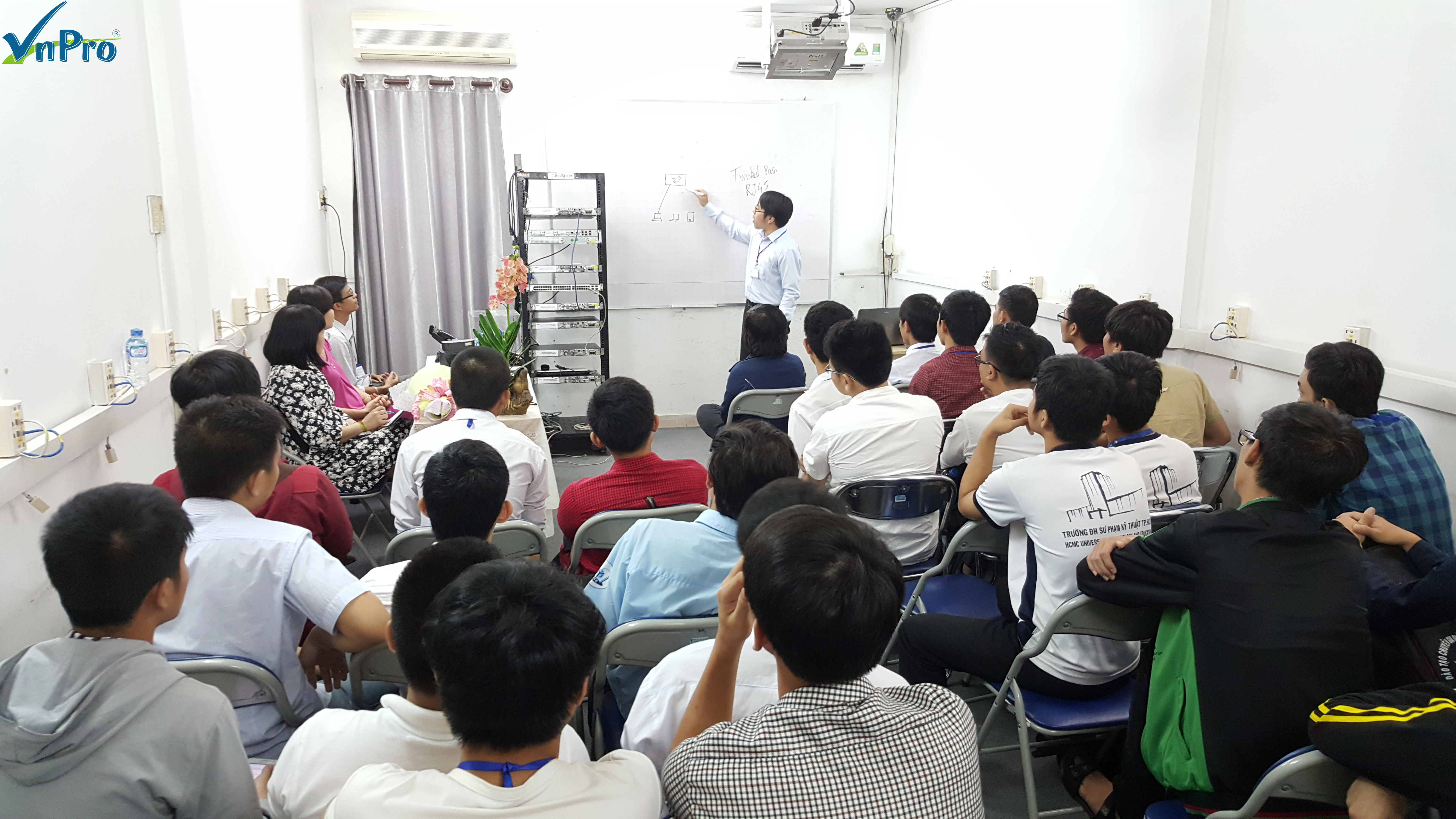 Chương trình này nằm trong loạt sự kiện định hướng nghề nghiệp dành cho sinh viên của VnPro phối hợp cùng các trường ĐH trên địa bàn Tp.Hồ Chí Minh cùng thực hiện. Diễn giả chính của chương trình là thầy Lê Đức Phương, một trong những giảng viên giàu kinh nghiệm của VnPro. Trong buổi hướng nghiệp VnPro còn tạo điều kiện cho các bạn tham quan hệ thống sever, thiết bị nghiên cứu học tập tại VnPro. Một số hình ảnh từ chương trình tham quan hướng nghiệp tại VnPro: