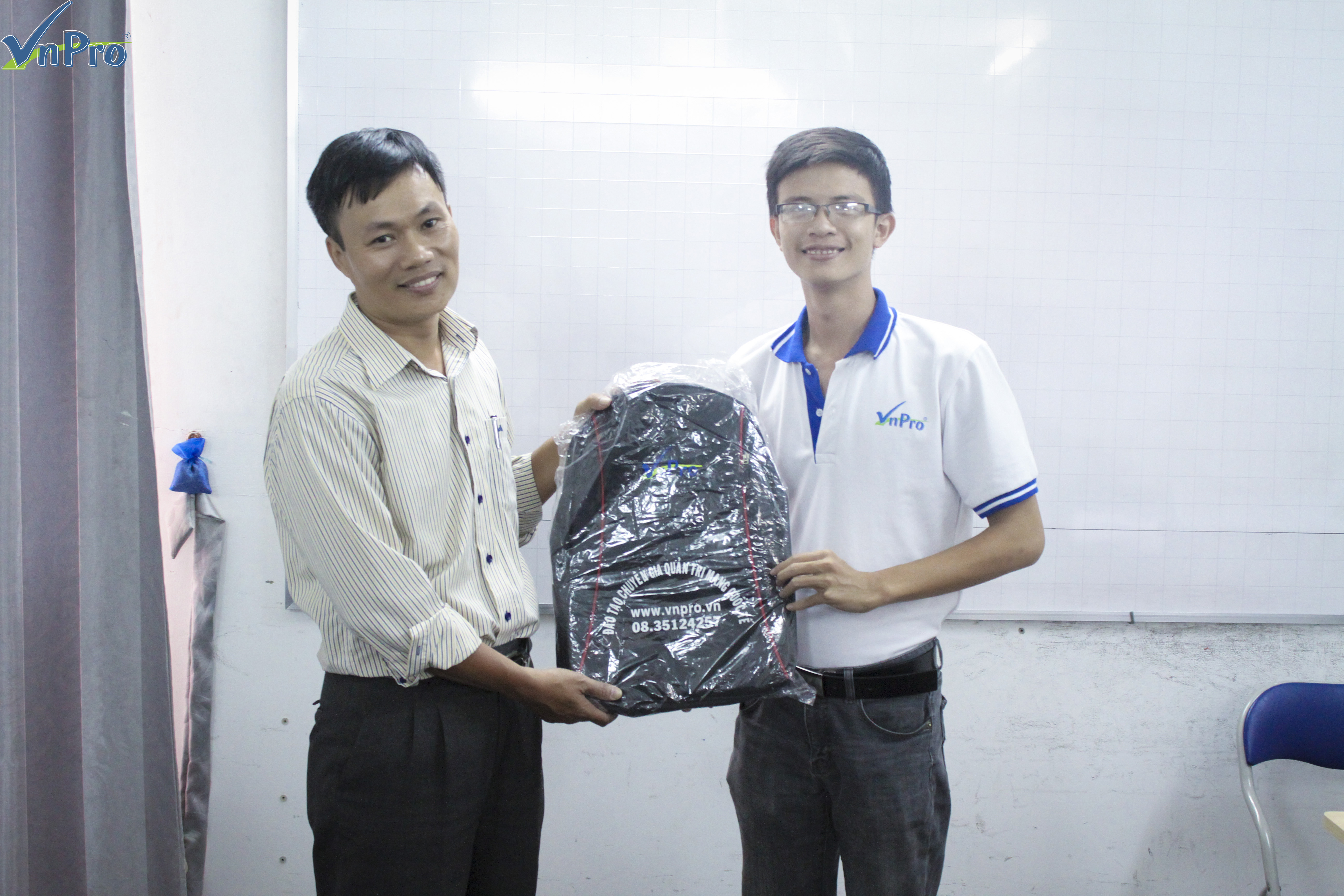 Đại diện VnPro tặng quà lưu niệm cho thầy Luyện