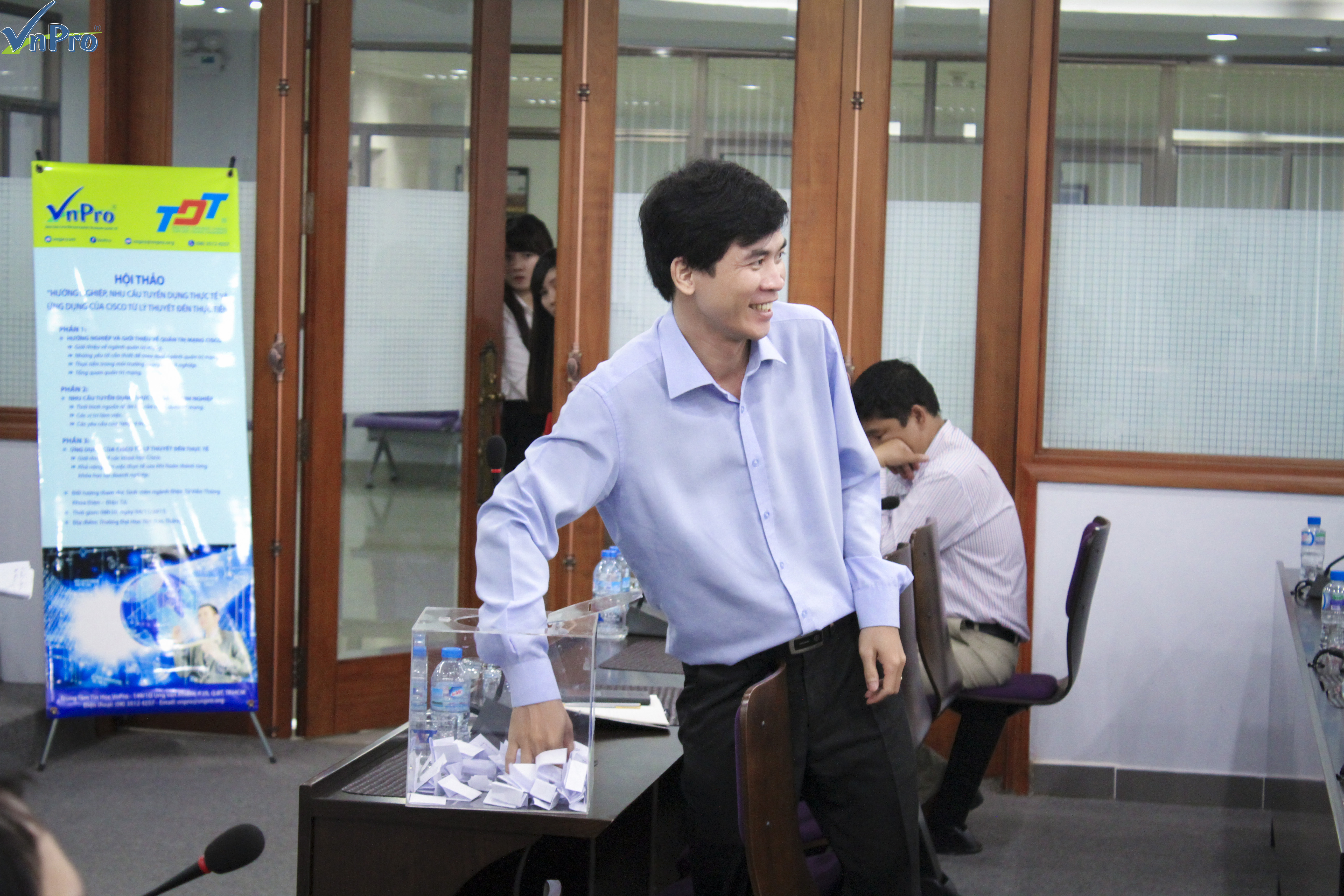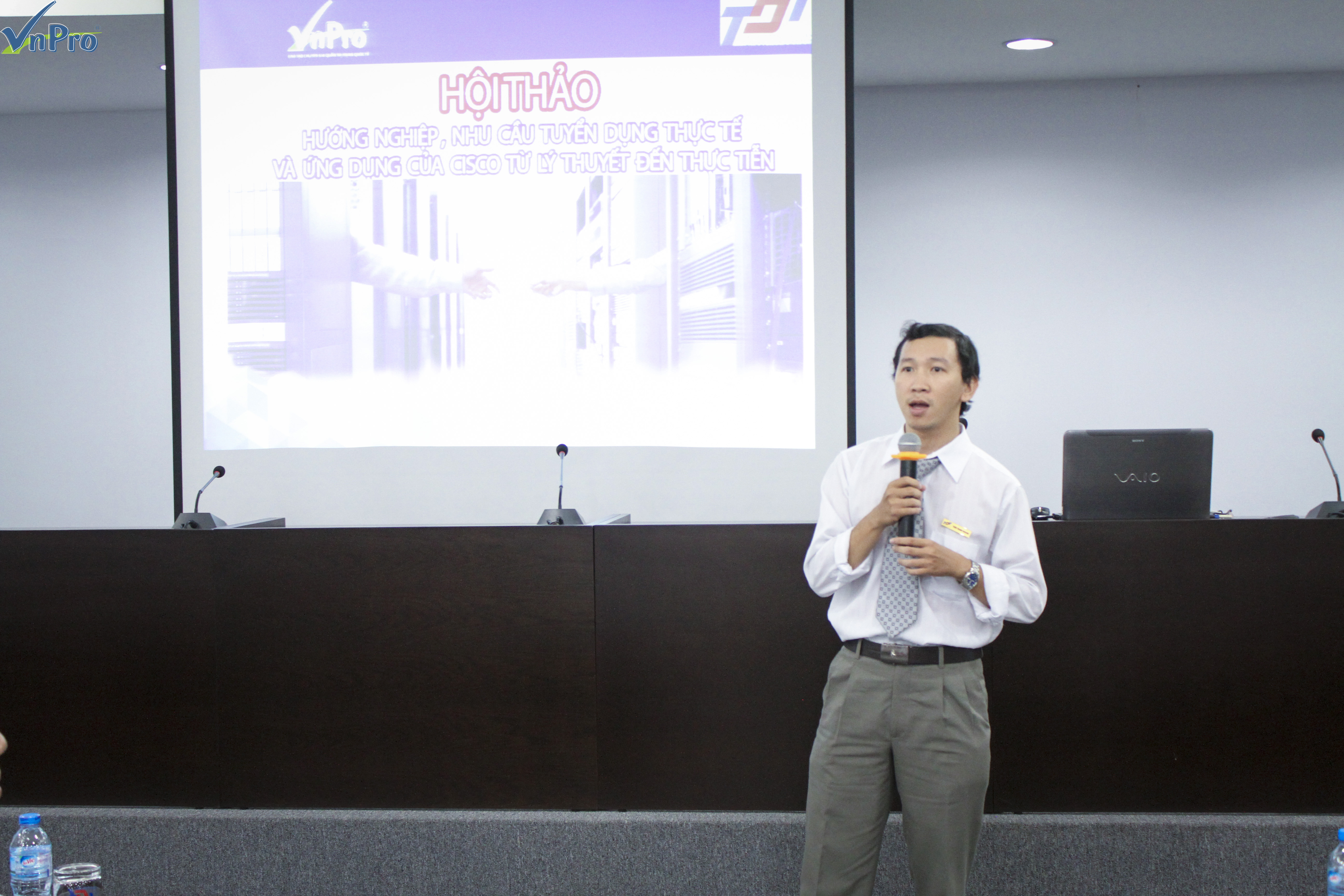 Sáng ngày 04/11/2015 vừa qua, VnPro đã phối hợp cùng với Khoa Điện – Điện Tử trường Đại Học Tôn Đức Thắng tổ chức hội thảo “HƯỚNG NGHIỆP, NHU CẦU TUYỂN DỤNG THỰC TẾ VÀ ỨNG DỤNG CỦA CISCO TỪ LÝ THUYẾT ĐẾN THỰC TIỄN”.