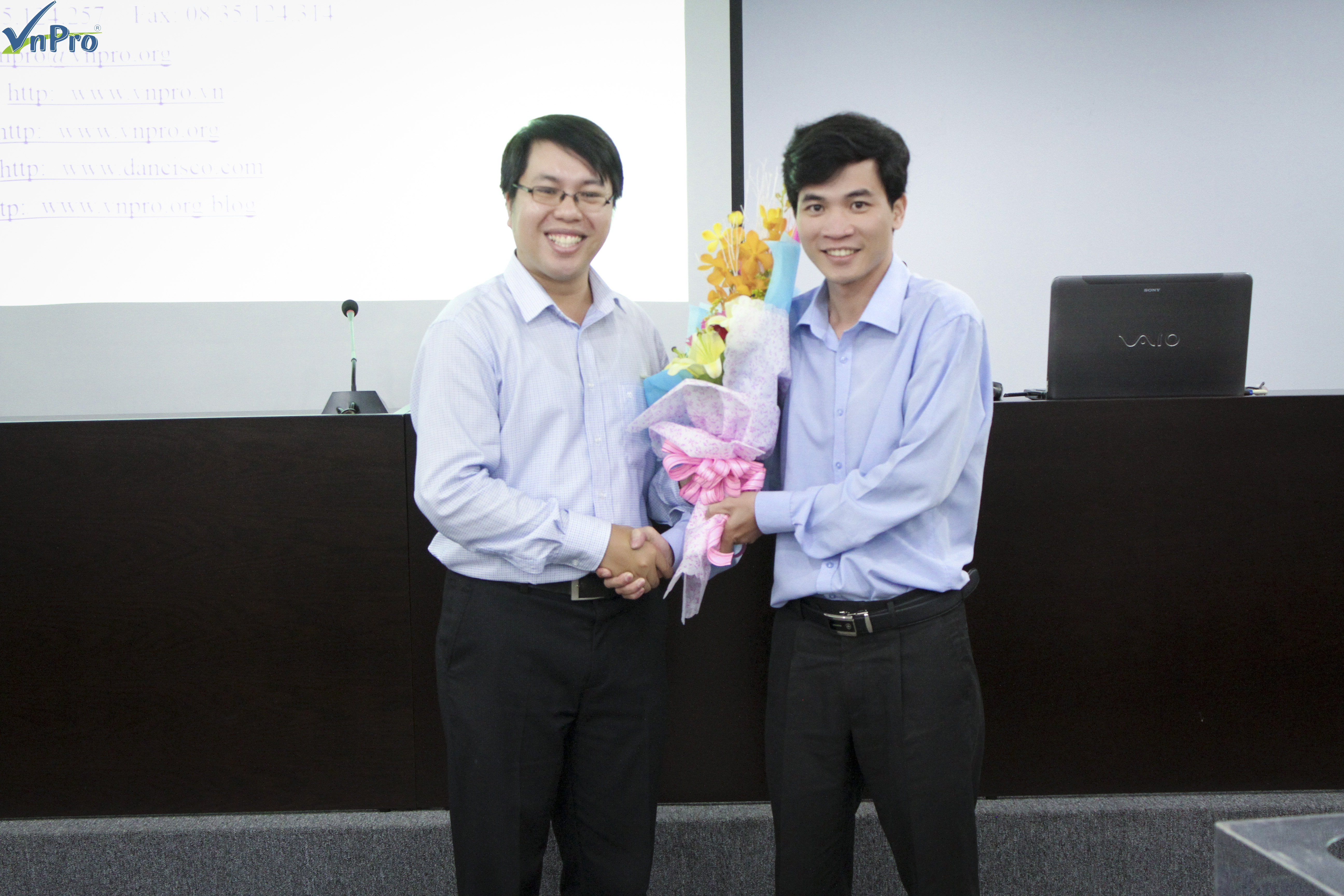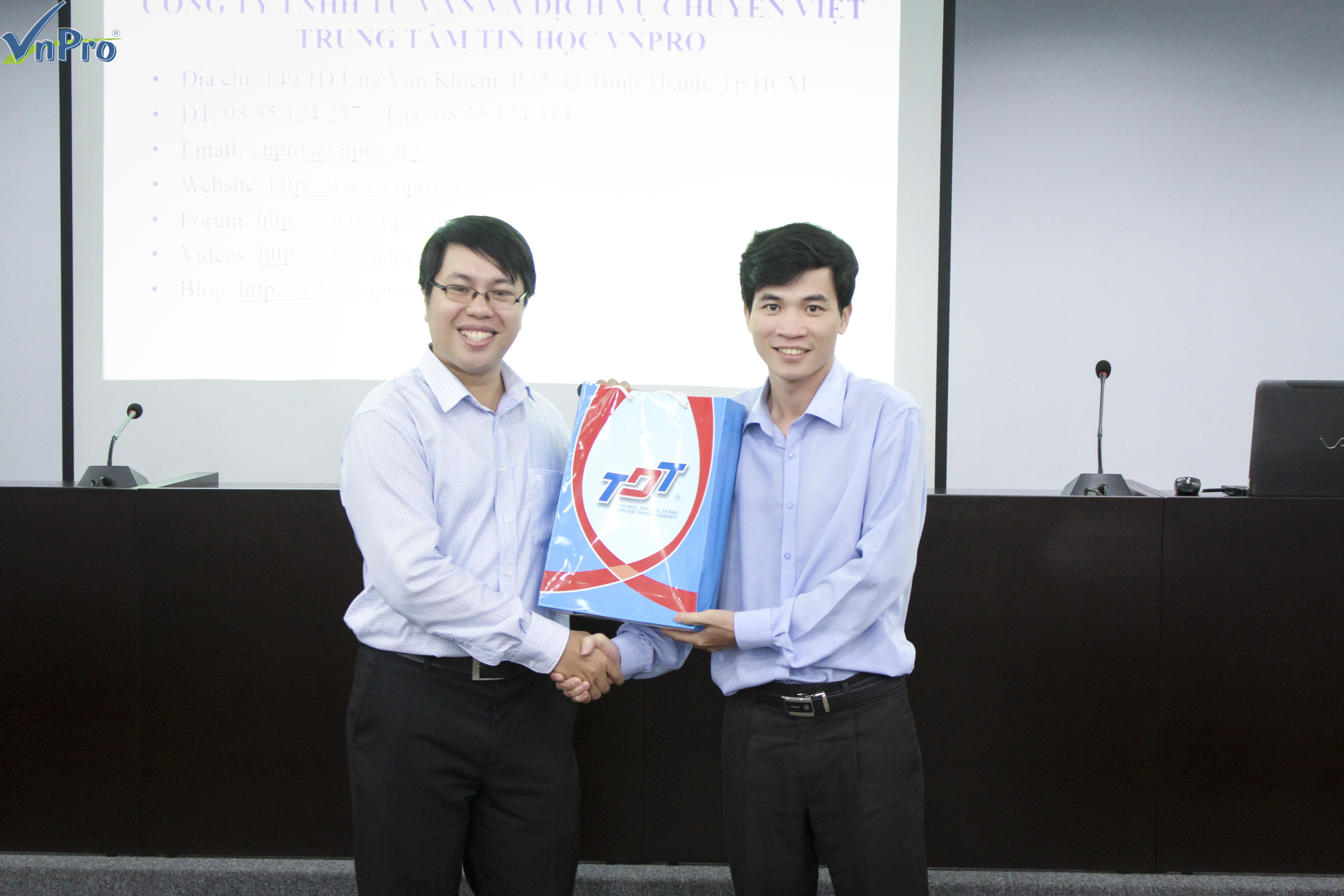 Ngoài ra VnPro còn dành tặng 2 suất học bổng cho 2 bạn sinh viên của khoa đã có những thành tích xuất sắc trong quá trình học tập cùng rất nhiều phần quà dành cho các bạn tham gia hội thảo. Không khí của buổi hội thảo sôi động ngay từ lúc bắt đầu cho đến tận phút cuối cùng. Với hàng loạt những câu hỏi dành cho diễn giả là thầy Lê Đức Phương về lựa chọn nghề nghiệp cũng như là việc lựa chọn các khoá học phù hợp với mình tại VnPro.