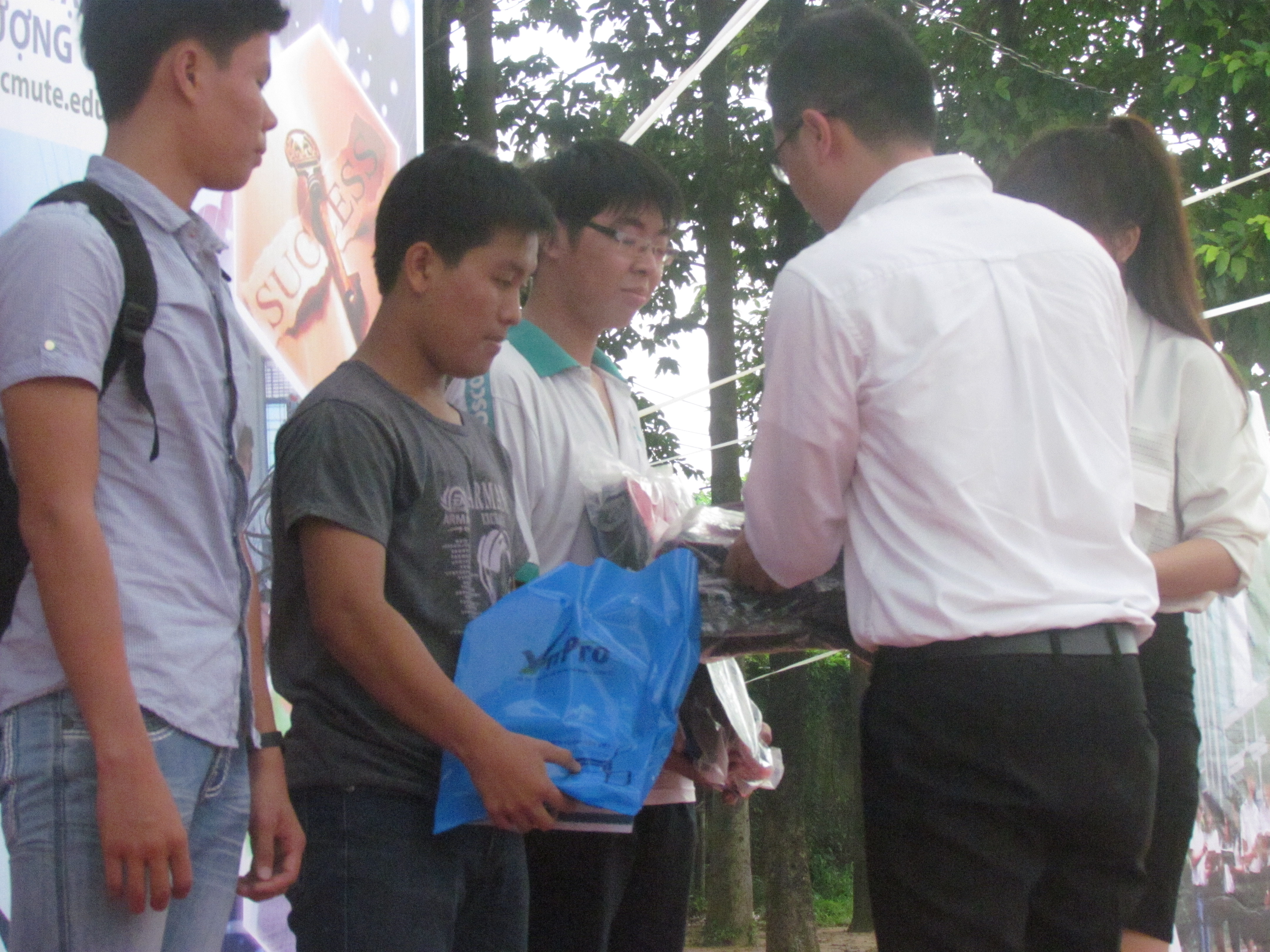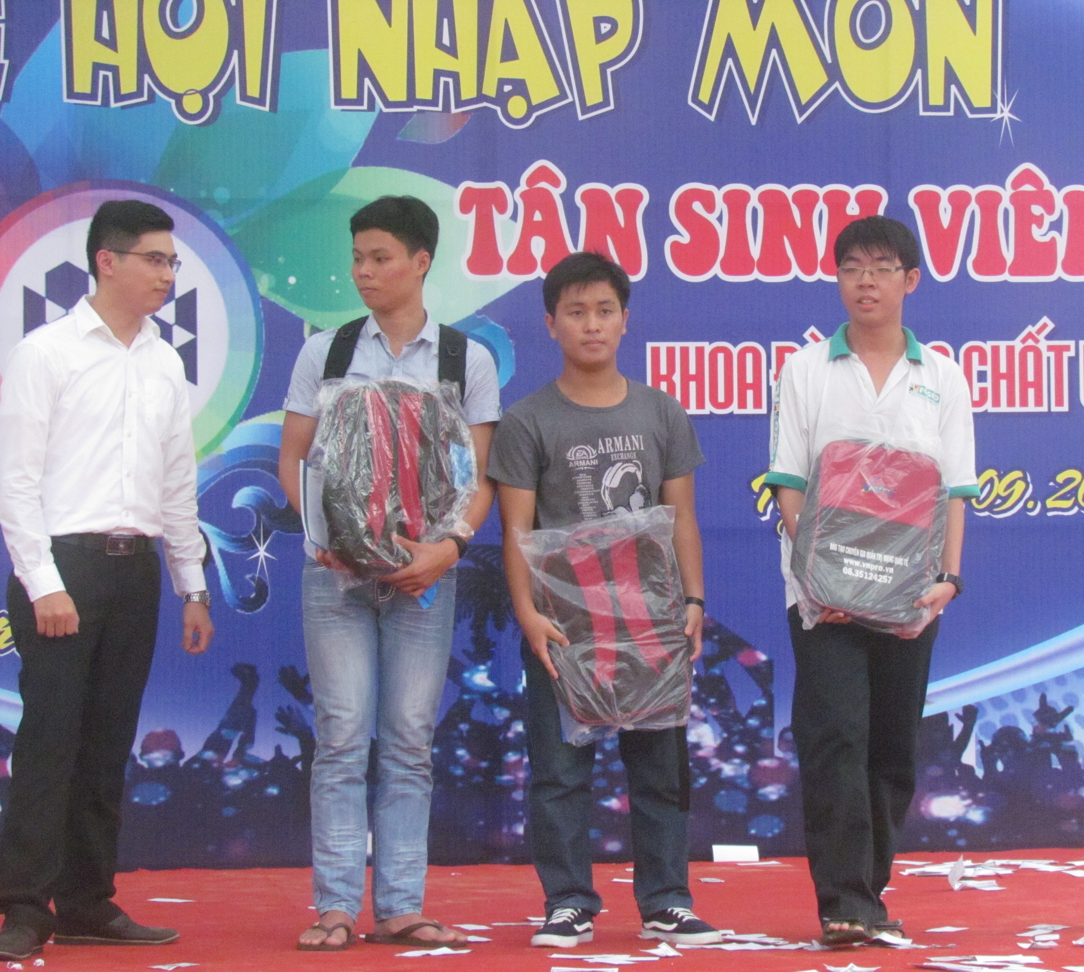 Thầy Minh Tiến đại diện VnPro trao tặng học bổng quà các phần qua cho các bạn tân sinh viên